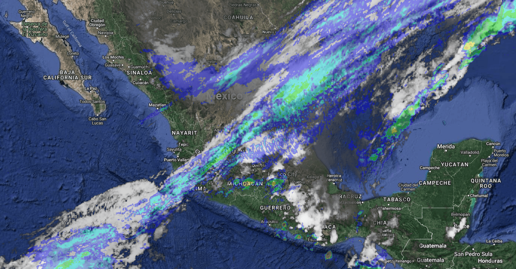 Finalmente, canales de baja presión y el ingreso de humedad del Océano Pacífico y Mar Caribe generarán lluvias puntuales muy fuertes en Michoacán y Guerrero, lluvias puntuales fuertes en Jalisco y Guanajuato, intervalos de chubascos en Nayarit, Colima y Campeche, además de lluvias aisladas en Yucatán y Quintana Roo.