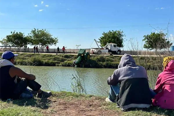 - El accidente se registró alrededor de las 10:00 horas de este martes, sobre el bordo del Canal Alto, a la altura del campo agrícola Las Margaritas de la sindicatura de Ruiz Cortines Uno, perteneciente al municipio de Sinaloa, en donde los trabajadores del campo cayeron a la obra hidráulica, abordo de un tractor de la marca John Deere, el cual jalaba una batanga.