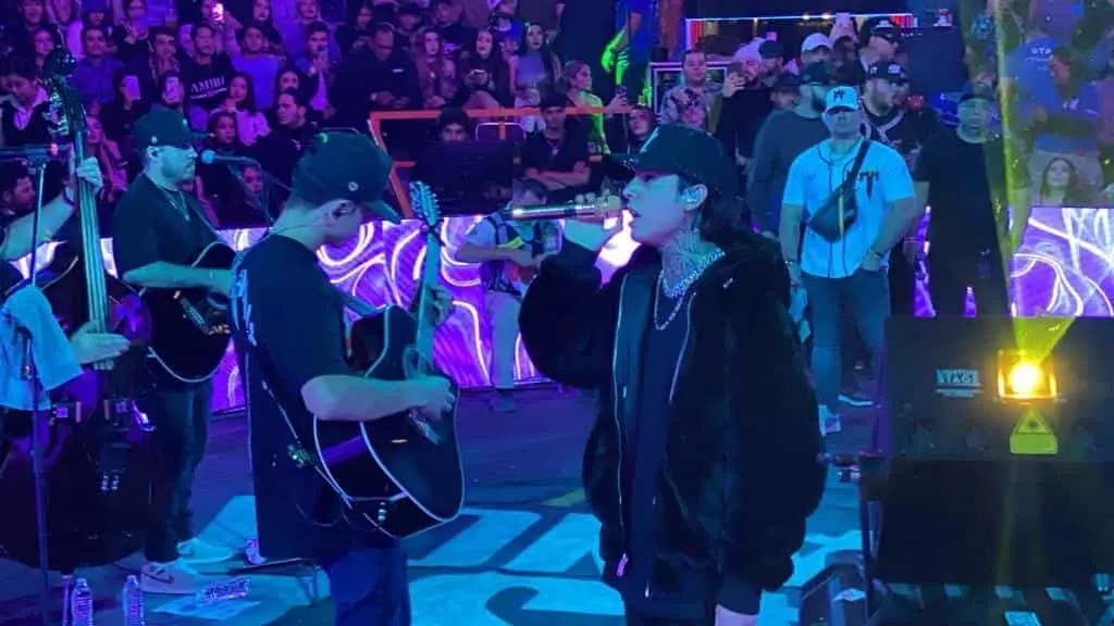 Fue alrededor de la 1 de la mañana cuando el oriundo de Hermosillo, Sonora saltó al escenario para comenzar su show con un saludo al público y entonando la canción «El F», al mismo tiempo que la audiencia estalló de alegría por ver la presencia del joven artista.