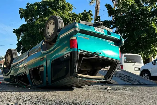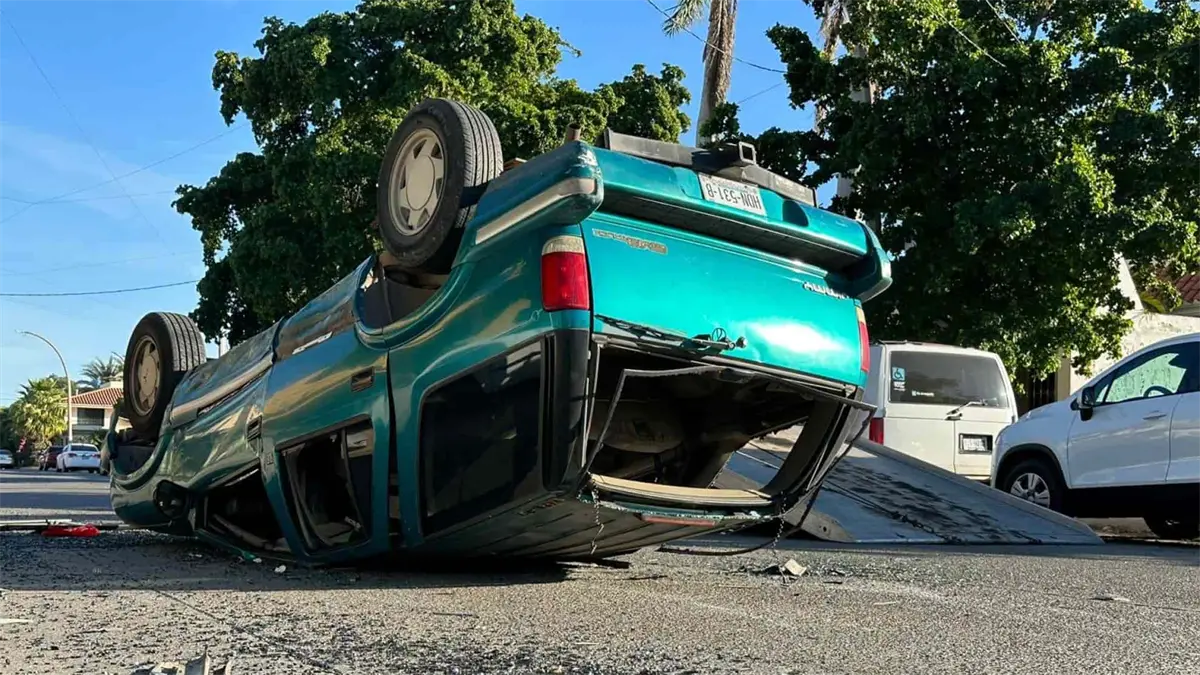 Tras el golpe, la vagoneta giró y posteriormente volcó hasta quedar con los neumáticos hacia arriba; en el hecho terminó con el cofre dañado, todos los cristales rotos e incluso derrame de combustible al dañarse el tanque de la gasolina.