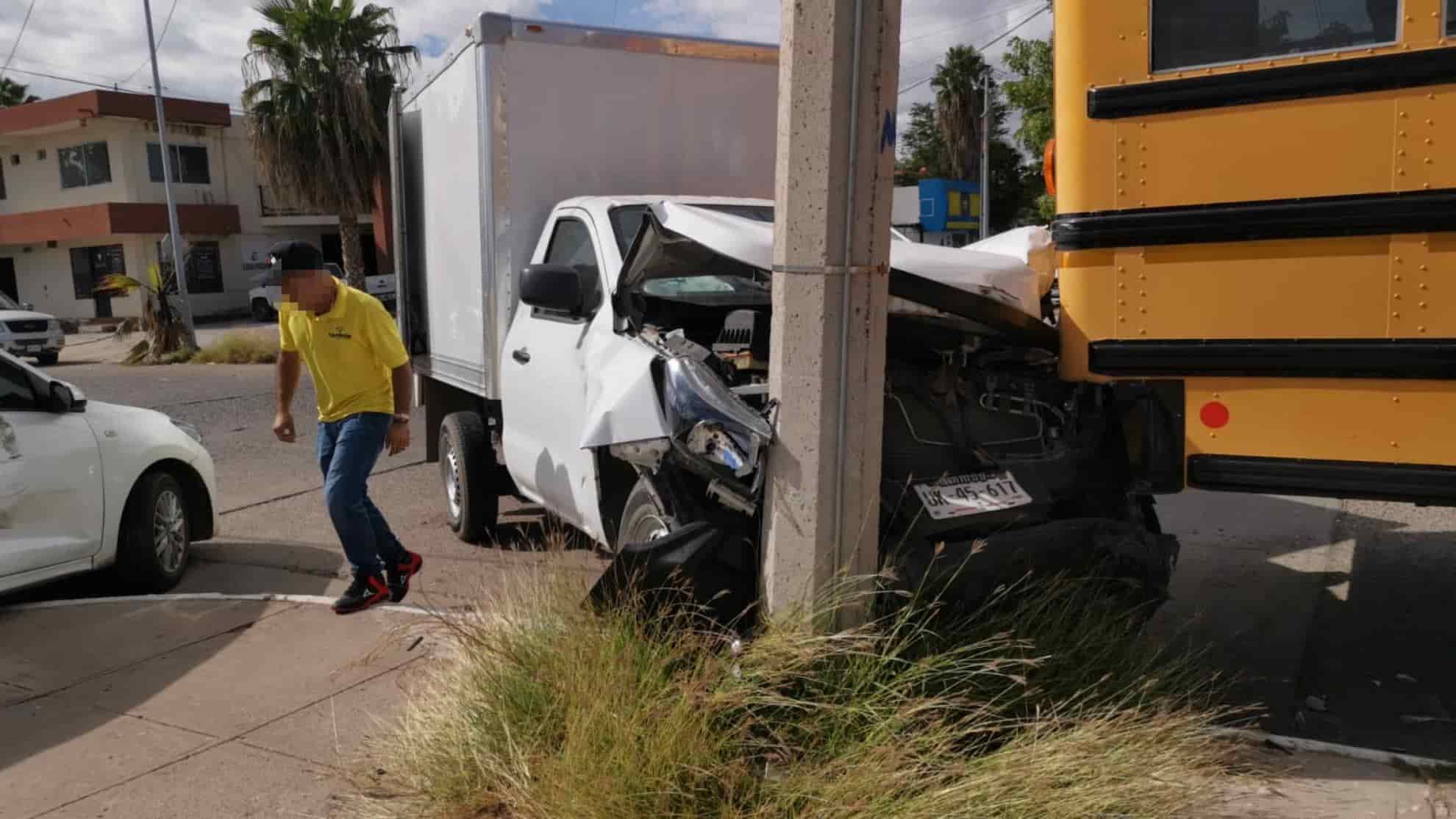 Importantes pérdidas materiales en dos unidades y una mujer con lesiones leves, fue el saldo de un accidente presuntamente provocado por el conductor de una camioneta en transitado crucero de la ciudad de Los Mochis; tras el hecho, el presunto responsable se impactó contra un poste y un camión.