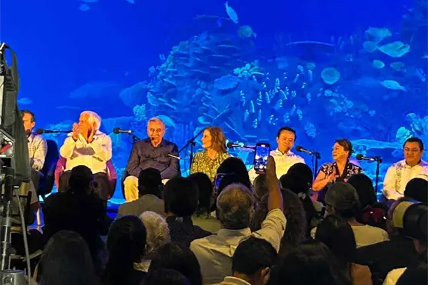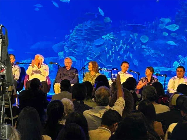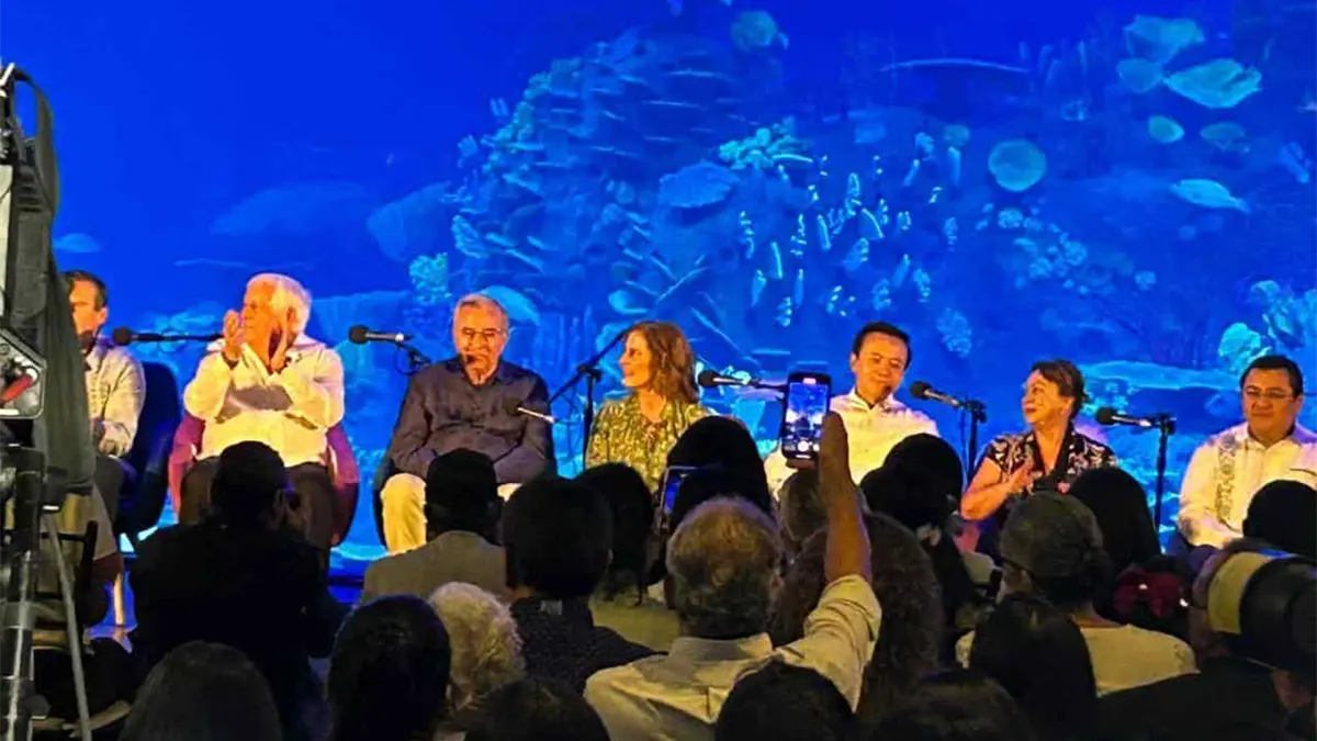 Como sede fue el Gran Acuario Mar de Cortez en Mazatlán, a los pies de la gran pecera oceánica, en donde se abrió un mensaje sorpresa por parte de buzos para las autoridades locales, estatales, federales e internacionales.