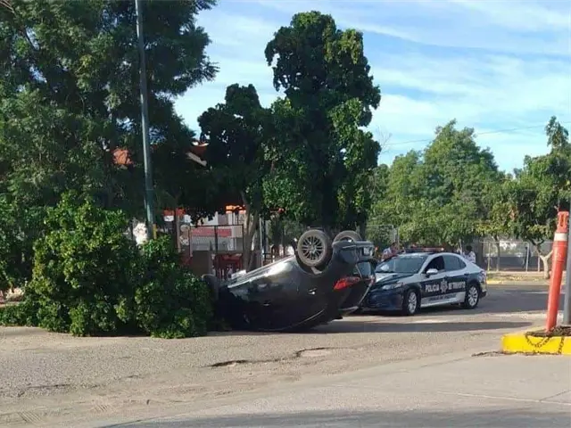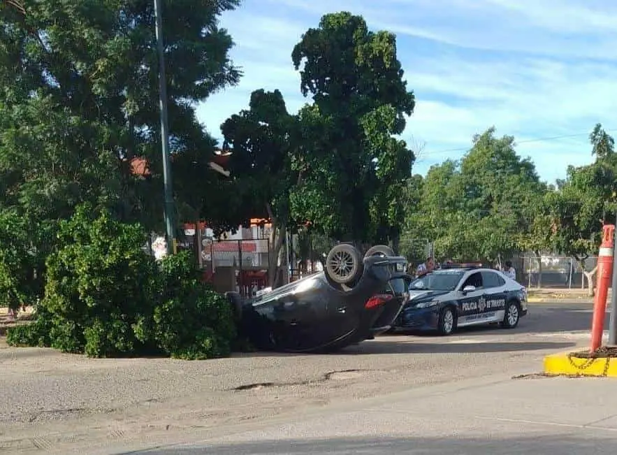 Una camioneta terminó volcada sobre uno de los bulevares importantes de la colonia La Conquista en Culiacán.