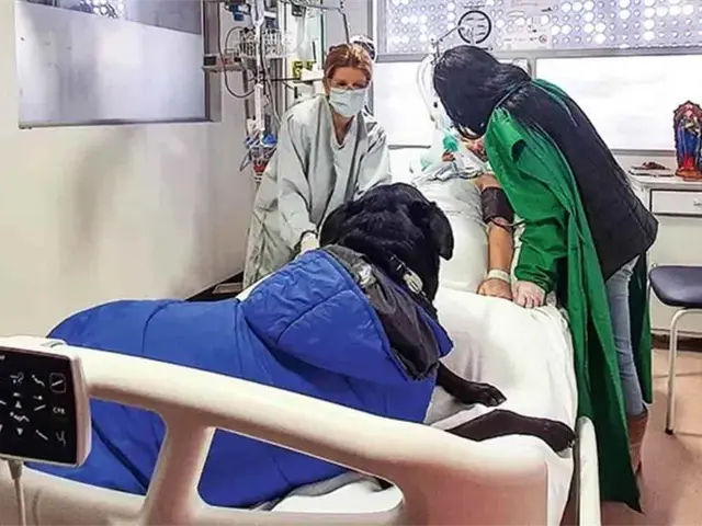 La dueña de "Diño" Miriam Bedoya, una paciente de 68 años que se encontraba en estado crítico en dicho nosocomio, pero gracias al amor de su mascota, esta pudo despertar sorprendiendo a todos los médicos.