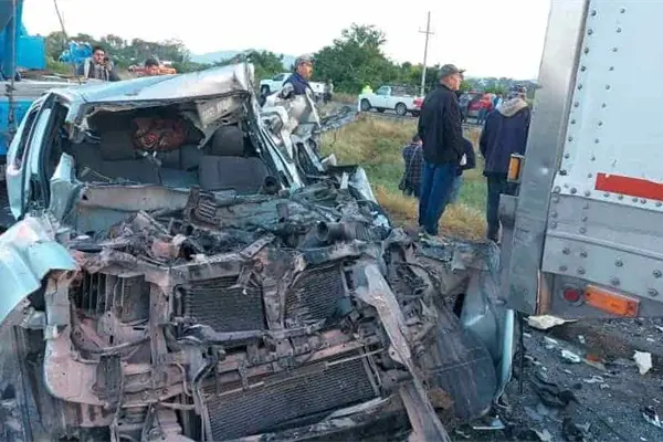 - La segunda unidad es otra camioneta Frontier en color gris, que se impactó contra la caja de otro tráiler, dejando al conductor atrapado.