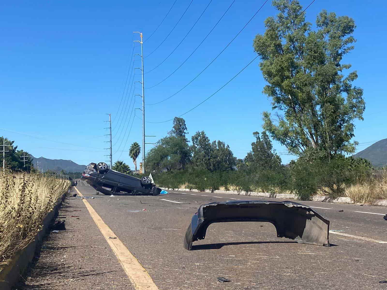 Una mujer perdió la vida tras una aparatosa volcadura en la carretera México 15 a la altura del Limón de Los Ramos en Culiacán.