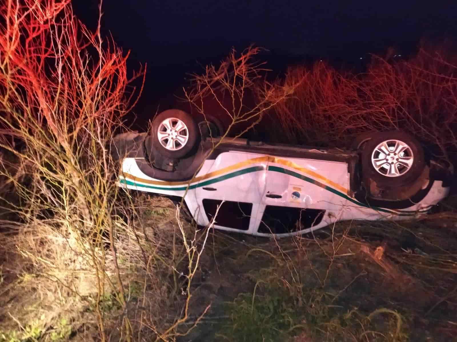 Por causas que se desconocen, perdió el control del vehículo, culminando el percance con la camioneta volcada a un lado de la carretera.