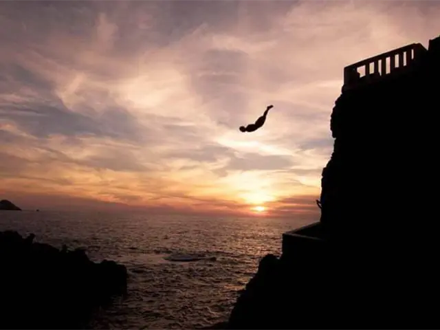 Al caer la tarde, este lugar se llena de personas, tanto locales como turistas, para presenciar el show que protagonizan los valientes al aventarse hacia el mar desde más de 14 metros de altura, y en zona rocosa.