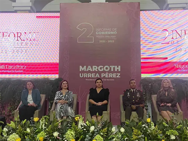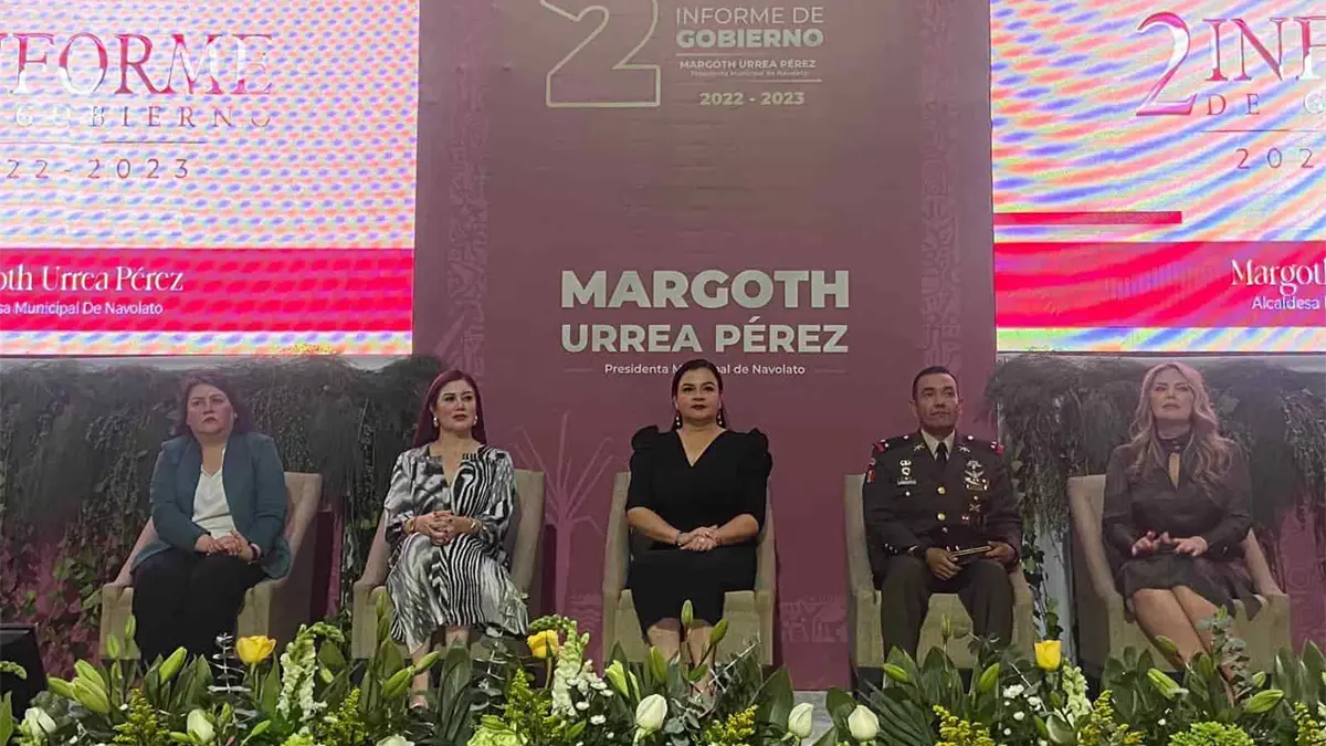 La Alcaldesa Municipal de Navolato, Margoth Urrea Pérez, presentó su Segundo Informe de Gobierno ante autoridades, funcionarios, y decenas de navolatenses en el Patio del Ayuntamiento de Navolato la tarde de este viernes 8 de diciembre.