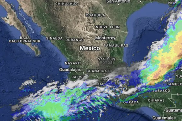 - Lluvias muy fuertes con puntuales intensas (75 a 150 mm): Oaxaca, Campeche, Yucatán y Quintana Roo.