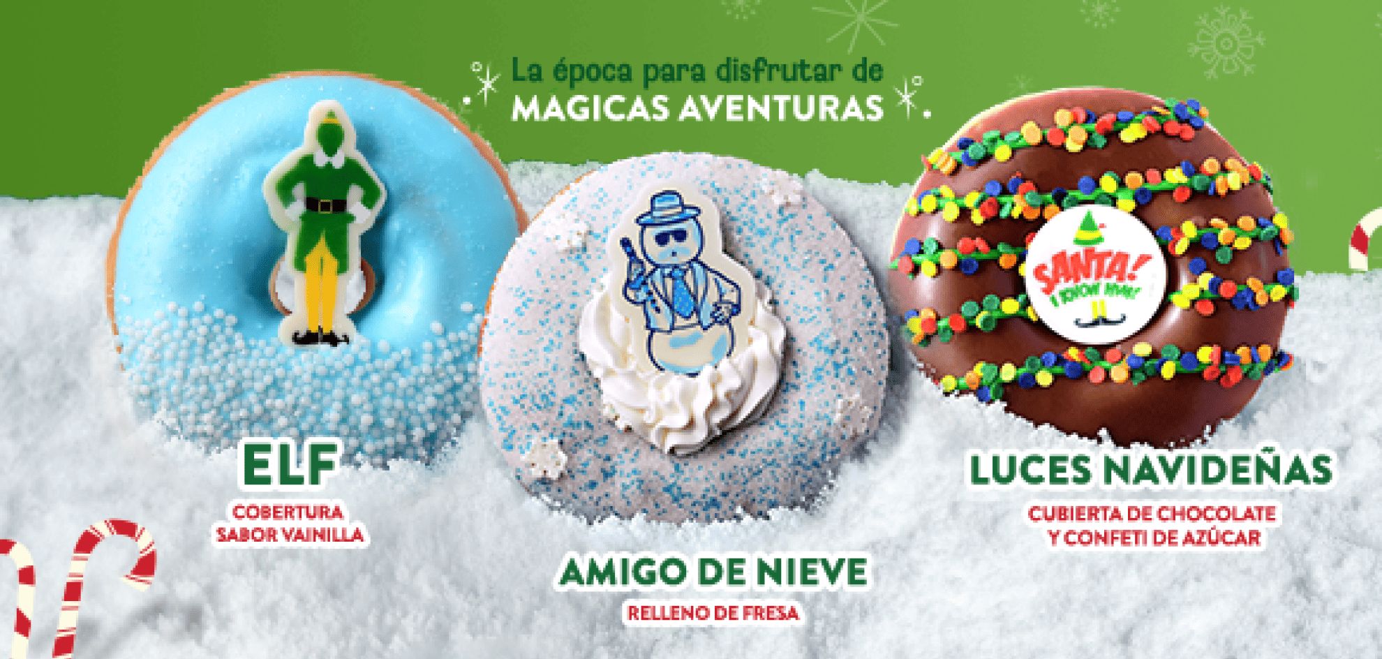 Por ello, esta temporada daniveña Krispy Kreme se inspiró en esta película para crear las donas Elf, que estarán disponibles en varios países del mundo, incluyendo México, del 4 al 31 de diciembre y sujetas a disponibilidad.