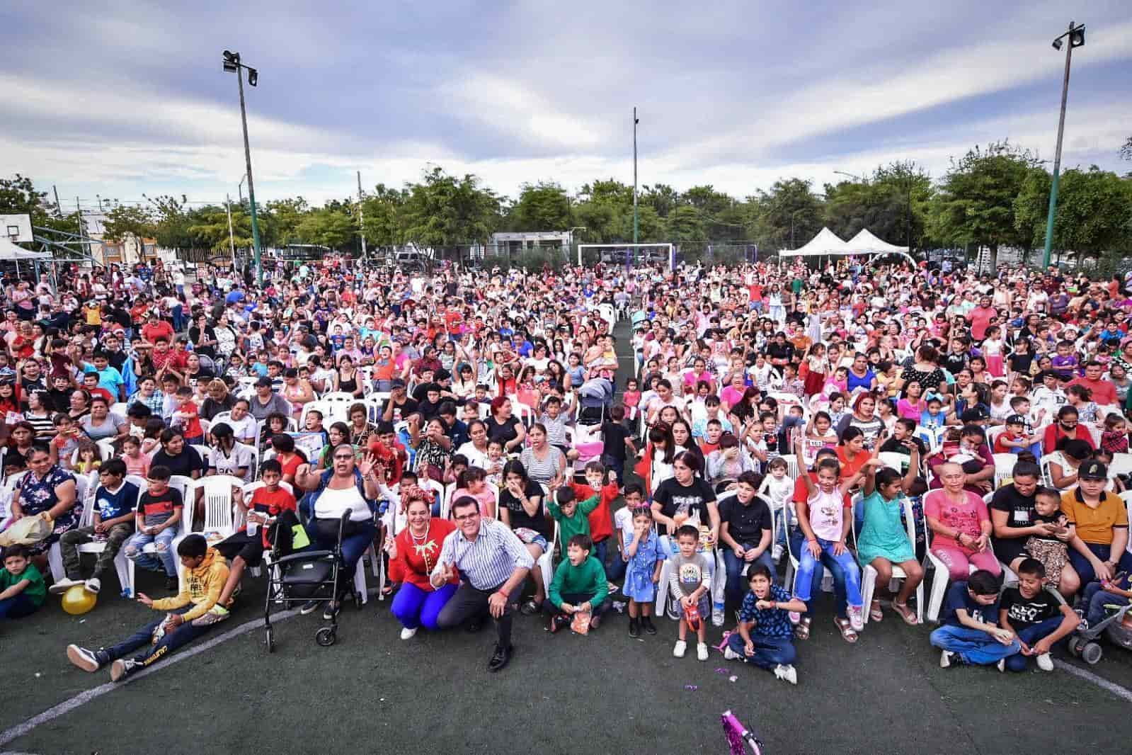 En un concurrido evento más de 4 mil niñas y niños recibieron dulces, pizza, pastel, algodones de azúcar, palomitas, juguetes y bicicletas.