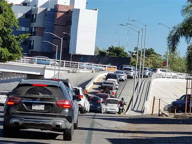 Colapsa tráfico en Culiacán tras fallar semáforos en el sector Tres Ríos