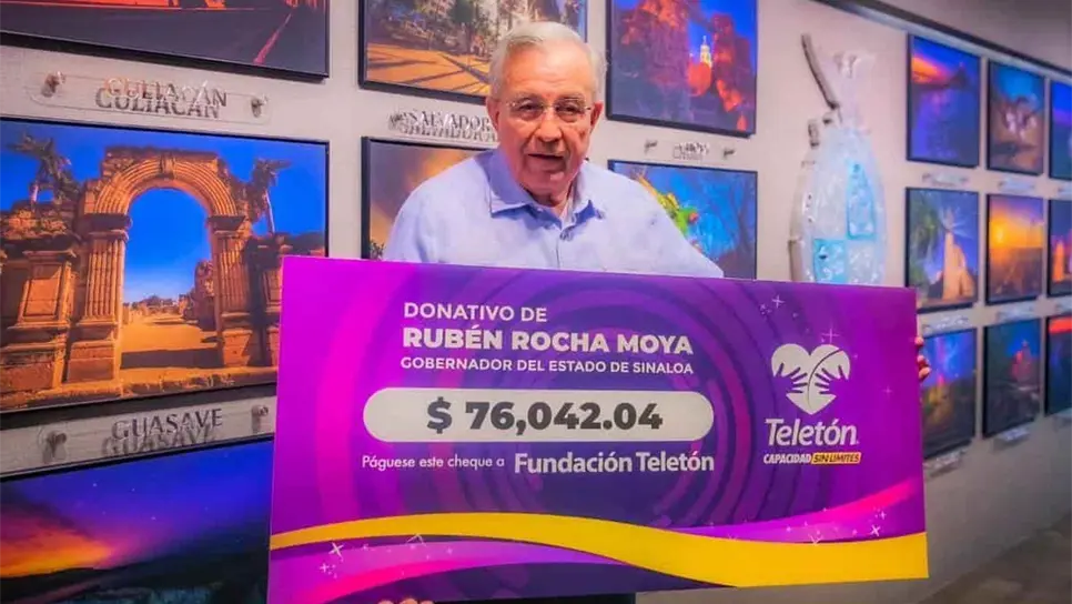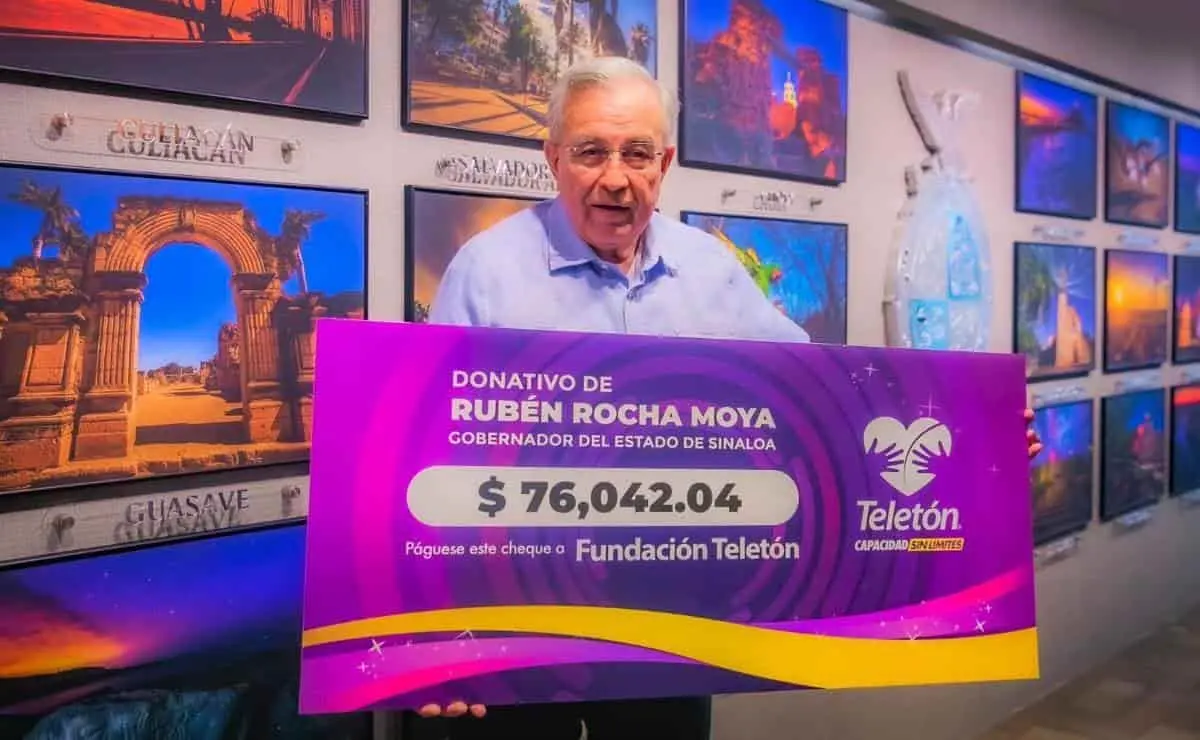 El Gobernador del Estado, Rubén Rocha Moya, donó su aguinaldo de 76 mil 42 pesos a la Fundación Teletón para poder llegar a la meta que la institución se propuso este año, correspondiente a 410 millones 473 mil 714 + 1 peso.