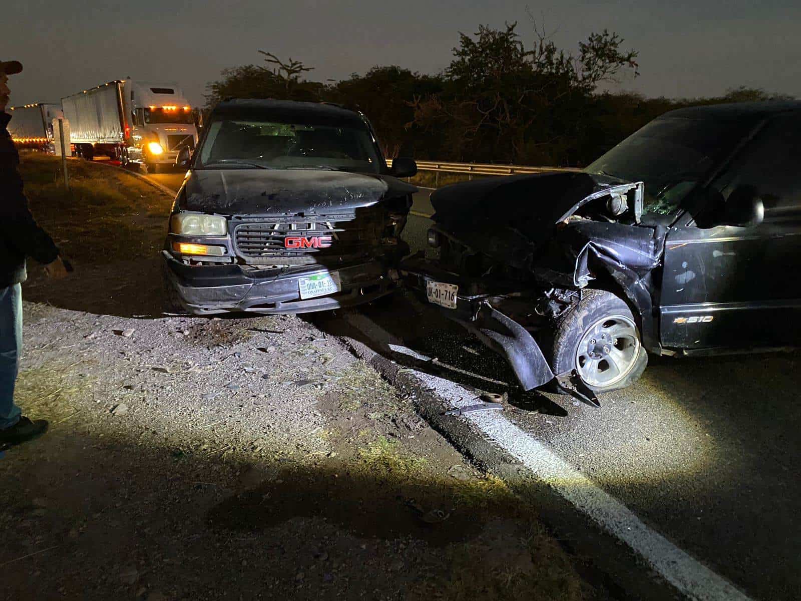 Las unidades involucradas son una camioneta GMC Sierra y una Chevrolet S10, ambas en color negro.