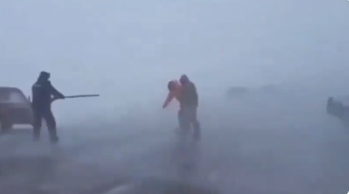 Un video circula en las redes sociales, donde los automovilistas estacionan sus vehículos y al querer cruzar la vía, estos caen por la fuerza de los vientos, además de que la cinta asfáltica está congelada.