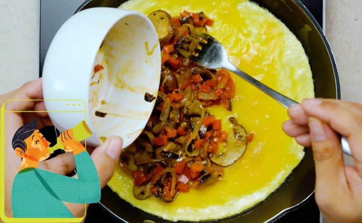 En sí, puedes cocinar los huevos como más te gusten, en omelet o revueltos, pero el truco es que tenga todos los ingredientes.