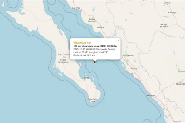De acuerdo al Servicio Sismológico Nacional tuvo una Magnitud de 4.0 cuyo epicentro se ubicó frente a las costas sinaloenses en el Golfo de California.