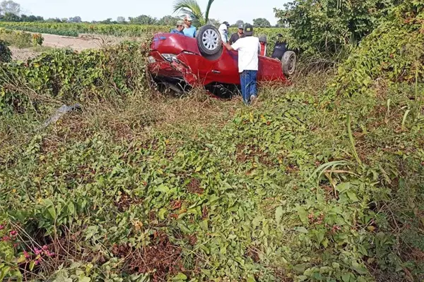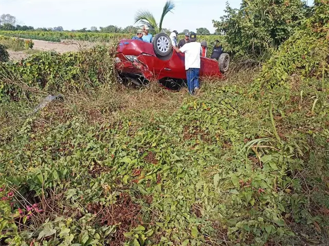 Fuerte incidente vial se registró este sábado, 6 de enero, a la salida de El Walamo, perteneciente a la sindicatura de Villa Unión, donde un vehículo Versa terminó volcado con cinco pasajeros a bordo.