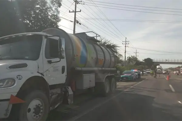 Cierran carretera en Mazatlán tras accidente entre pipa y camioneta