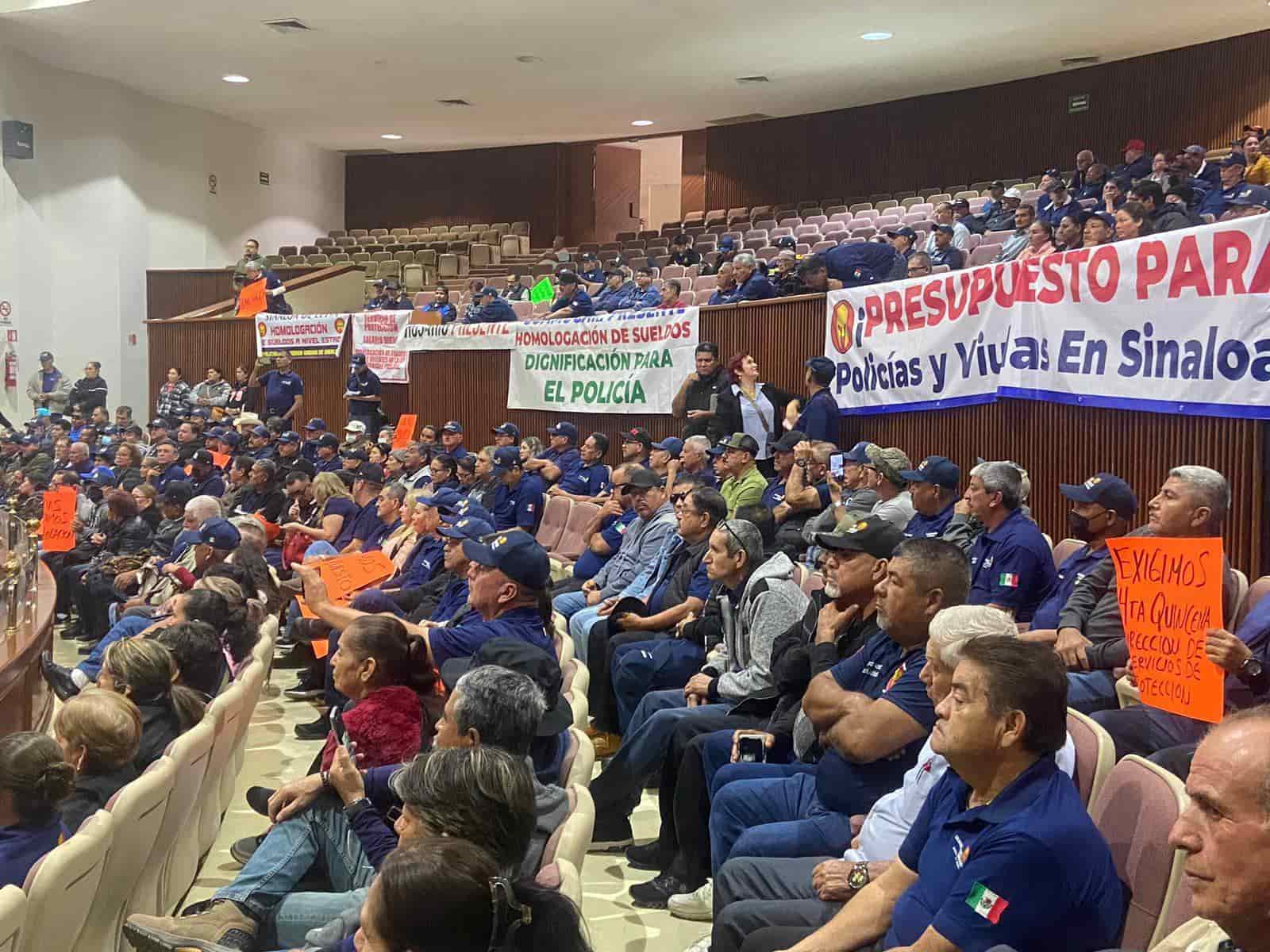 Más de 400 policías jubilados, activos, tránsitos, y viudas se manifestaron este martes 9 de enero en el Congreso del Estado exigiendo el pago de homologación salarial y aparecer en la Ley de Ingresos y Presupuesto de Egresos.