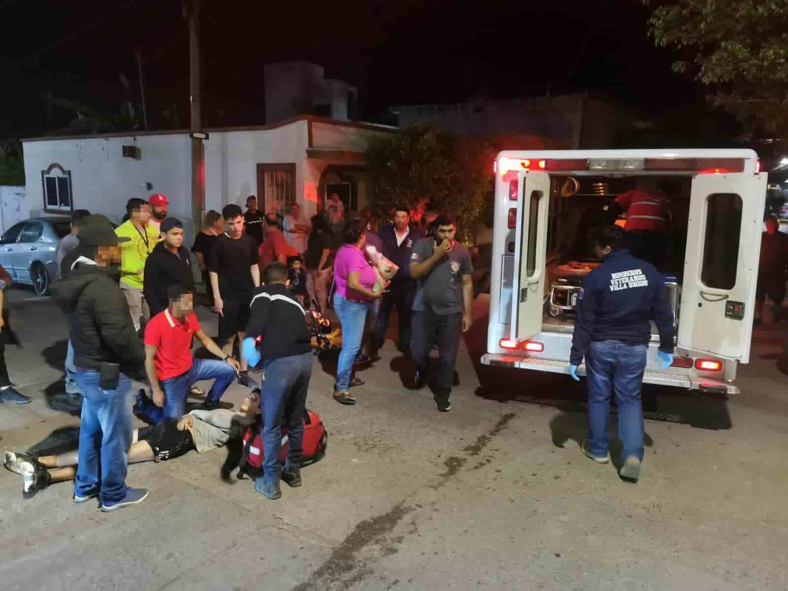 Los Bomberos Veteranos de la sindicatura acudieron al lugar para prestar asistencia a los heridos, donde una mujer resultó con dolor en el fémur derecho y un joven de 15 años con posible luxación en el codo derecho, los cuales fueron llevados al hospital para recibir atención médica especializada.