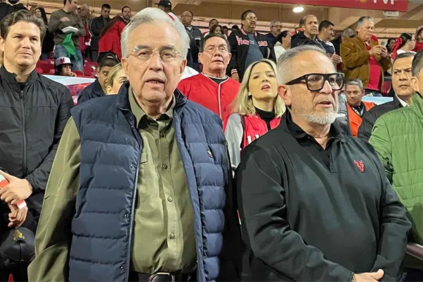 ¿De rojo o de guinda? Se le cuestionó por Luz Noticias al Gobernador de Sinaloa, Rubén Rocha Moya, cuál era el color con el que su corazón asistía esta noche al Estadio de Beisbol Teodoro Mariscal donde se disputó el primer juego de la serie semifinal entre los Venados de Mazatlán contra los Tomateros de Culiacán.