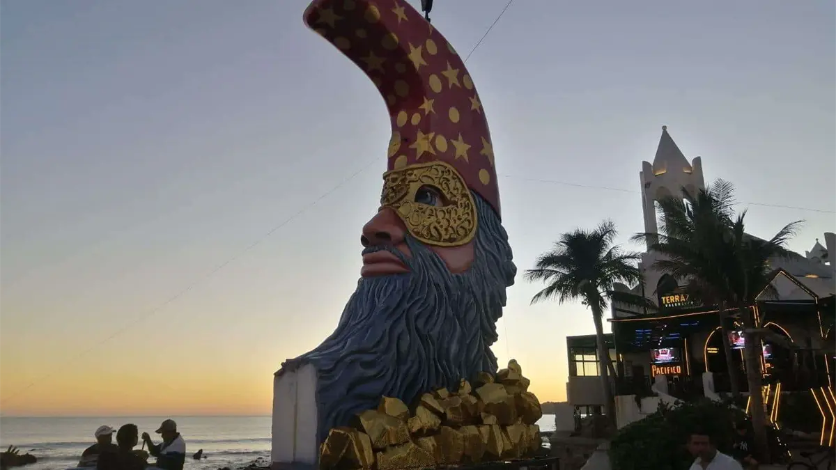 Durante la tarde de este sábado, la avenida Del Mar en Mazatlán se vistió de arte y anticipación con la instalación de otro monigote en el paradero de las letras de Mazatlán, punto de encuentro emblemático en el inicio de la avenida.