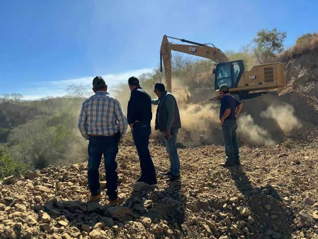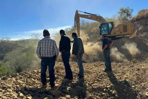 El alcalde de El Fuerte, Gildardo Leyva Ortega, cumple con los habitantes de la comunidad de Chinobampo con el arranque de la construcción del represo de agua en la sindicatura para optimizar el suministro hídrico local.