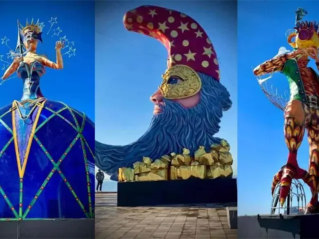 Con alturas que rozan los 12 metros, estos monigotes son auténticas obras de arte, meticulosamente diseñadas para capturar la esencia del tema central del carnaval.
