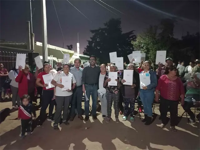 «Haremos la entrega de escrituras a casi 50 familias de aquí de esta zona, esta ampliación de la Loma de Rodriguera, que por fin van a tener la certeza jurídica, la seguridad de que su patrimonio ya es suyo», comentó.