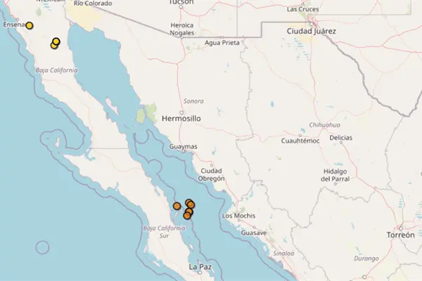 Cinco de ellos ocurrieron en Baja California Sur, frente a las costas sinaloenses.
