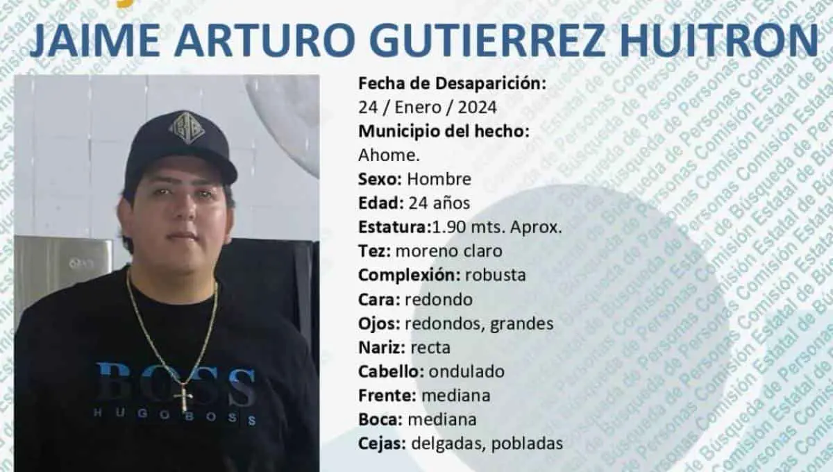 Se trata de Jaime Arturo Gutiérrez Huitrón, de 24 años de edad, quien tiene su domicilio en la colonia Insurgentes, de donde presuntamente “levantado” por civiles armados.