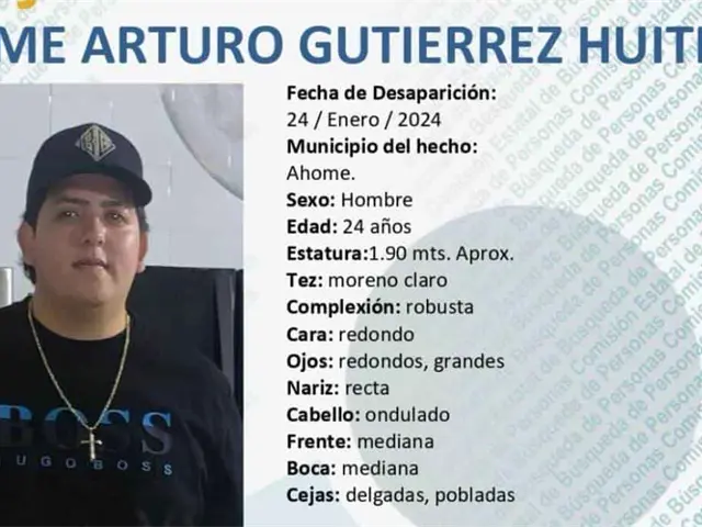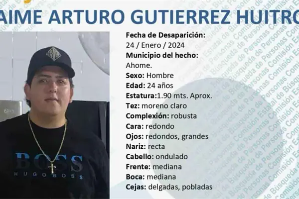 Si usted ha visto a Jaime Arturo Gutiérrez Huitrón, o cuenta con información que ayude a su familia y a las autoridades a localizarla, favor de comunicarse al 6688-16-40-63 en la Dirección Municipal de Apoyo a Búsquedas de Personas Desaparecidas en Ahome.
