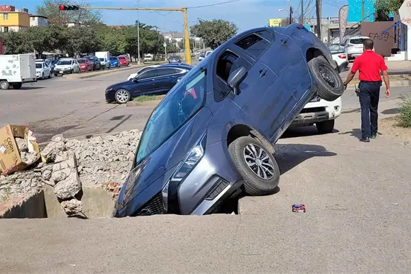 Según información recabada en el lugar, el chofer de la unidad realizó una mala maniobra y subestimó la distancia, por lo que no pudo evitar que su vehículo cayera junto con la parte delantera en el agujero donde se realizaban los trabajos de reparación.