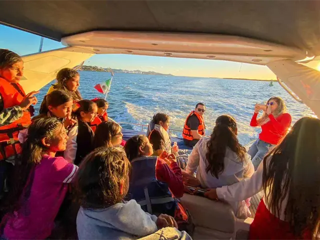 El programa de Turismo Social «Turismo para Todos», fue protagonizado por niñas de Las Grullas Margen Izquierdo, Ahome, quienes por primera vez pudieron disfrutar de un paseo por la Bahía de Topolobampo y conocer al «Pechocho», el delfín silvestre más amigable del mundo.