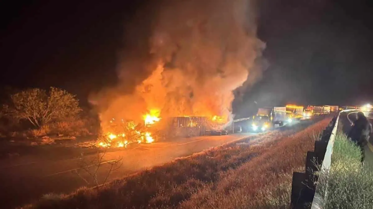 La noche de este martes, un aparatoso accidente ocurrido sobre la carretera internacional México 15 dejó como saldo un tractocamión volcado y calcinado mientras se dirigía a la frontera norte cargado con frutas y verduras.