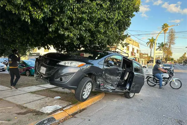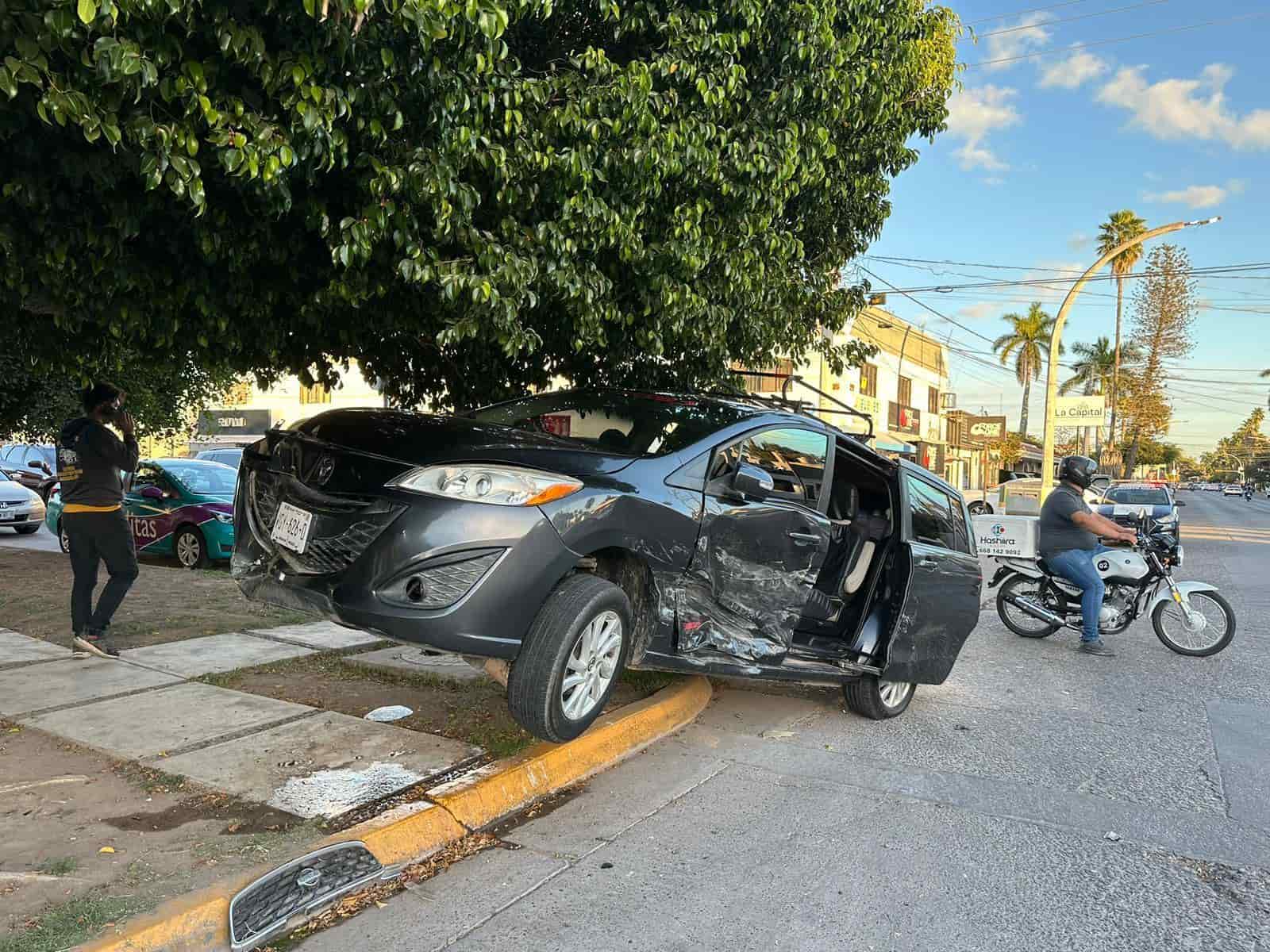 Información recabada en el lugar indica que la adulta mayor circulaba en el vehículo por la Río Sinaloa con dirección al norte, pero al llegar al cruce con la avenida Valdez, la mujer no hizo alto y se impactó en el costado izquierdo del lado del chofer a la Mazda, lo que provocó que está terminara montada en uno de los tres bolardos que se encuentran en ese cruce.