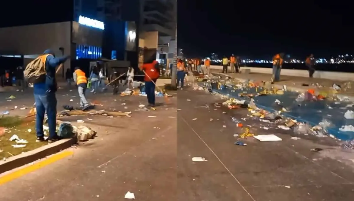 Limpian el Malecón de Mazatlán en tiempo récord; así recogen cientos toneladas de basura en el Carnaval | VIDEO