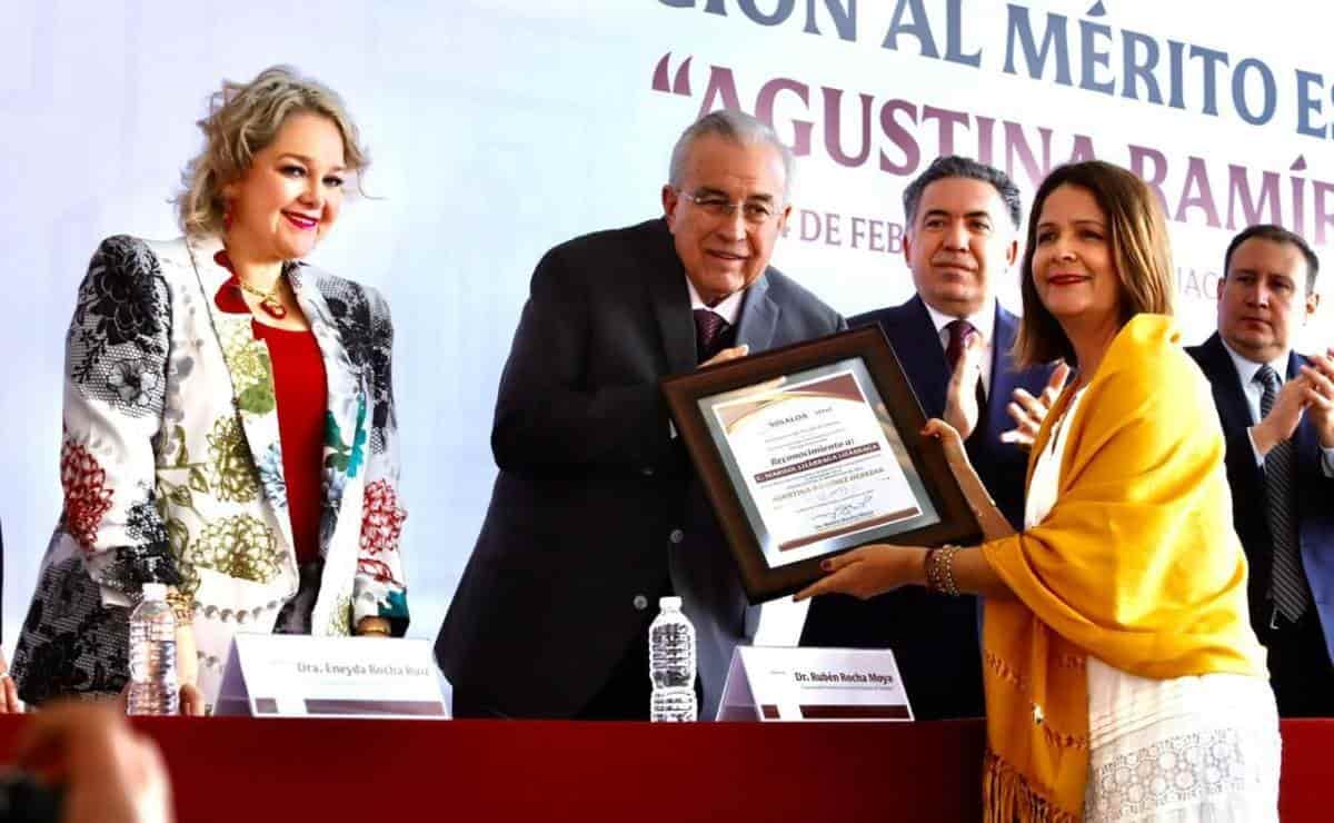El Gobernador de Sinaloa, Rubén Rocha Moya le entregó a la maestra rural Marisol Lizárraga Lizárraga el Premio Estatal al Mérito Social "Agustina Ramírez" 2024, por ser una promotora de una cultura de paz, comprometida con las necesidades de la comunidad de San Marcos en Mazatlán.