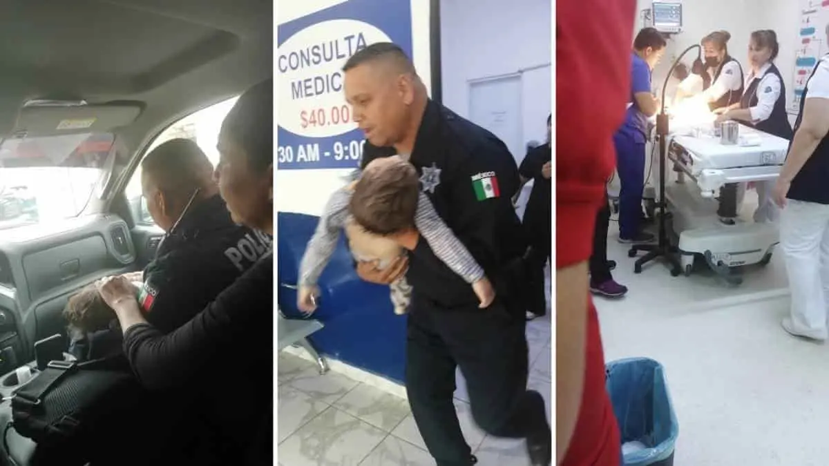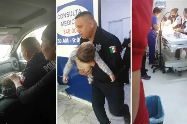 De inmediato se movilizaron a unas cuadras de llegar a la farmacia el Comandante tomó al niño en los brazos y lo cargó a la patrulla, junto con su familia lo trasladaron de inmediato al hospital general, adonde llegaron tres minutos después para ingresarlo a recibir atención médica. En el trayecto el menor iba inconsciente y con signos vitales bajos, y el policía le dió reanimación y respiración de boca.