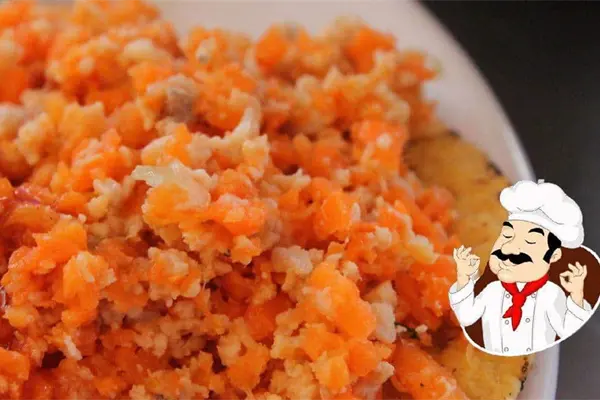 Rallas las zanahorias, partes el pepino y la cebolla en cuadritos; esto lo mezclas con el kilogramo de sierra molida.