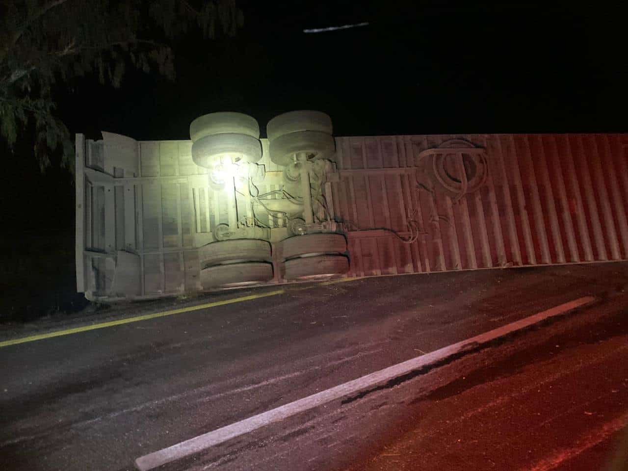 El reporte del accidente llegó alrededor de las 05:00 horas, cuando un tráiler de caja metálica volcó en el kilómetro 119 de la vía, interrumpiendo el tráfico en esa dirección.