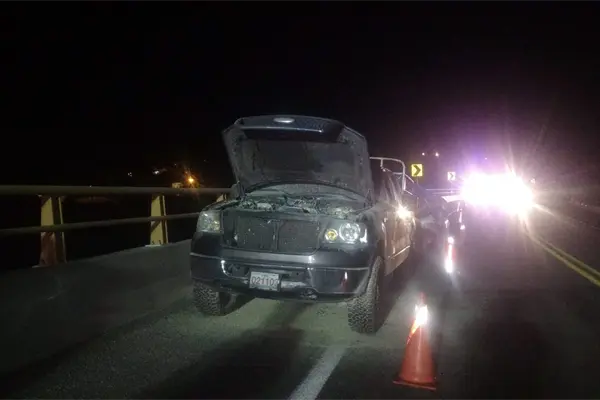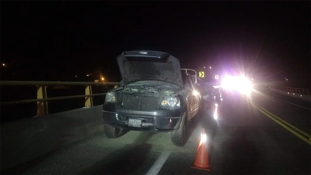 El chofer de una camioneta Ford Lobo evitó una tragedia mayor al lograr sofocar el fuego que se había generado en el motor del vehículo.