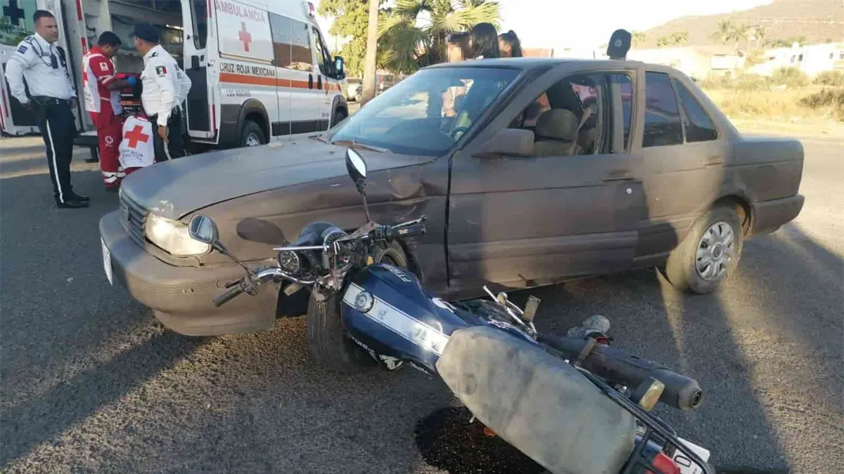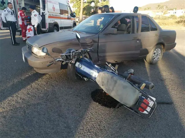El segundo hecho de tránsito se registró casi a la misma hora, pero en el cruce de la calle Antonio Flores y el bulevar Pedro Anaya, del fraccionamiento Álamos Country, entre un vehículo de la marca Honda, línea Civic, de color gris con placas de Sinaloa, y una motocicleta de la marca Kurazay de color negro, en la que viajaba el lesionado.