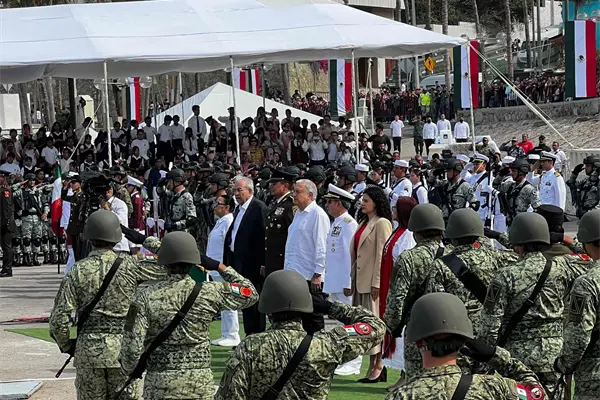AMLO encabeza ceremonia por el aniversario de la Bandera en Mazatlán