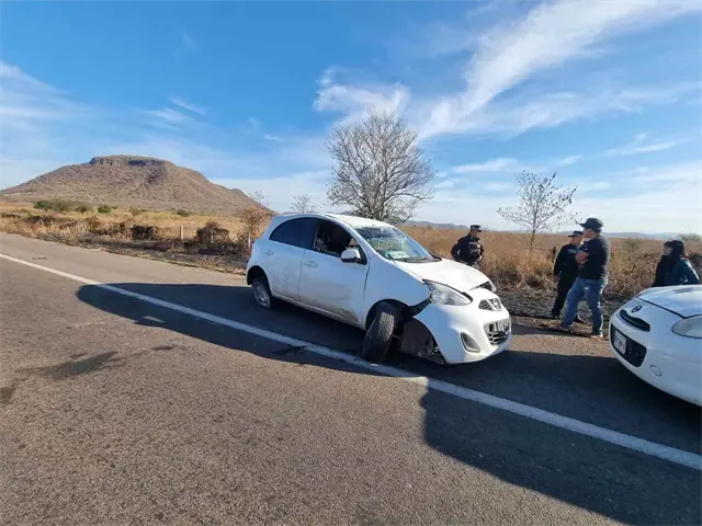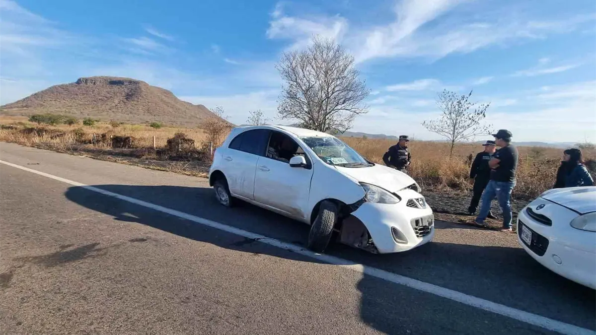La unidad accidentada es un Nissan March de color blanco, con las placas del estado de Sinaloa.