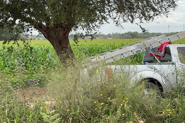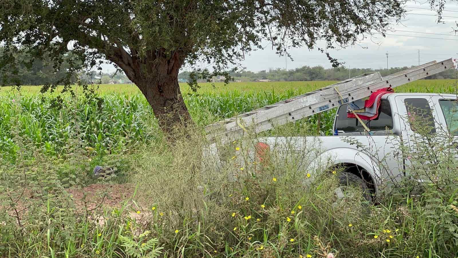 A unos metros del cuerpo está abandonada una camioneta doble cabina Nissan Fronthier placas UJ98050 del Estado de Sinaloa, color plata, con una escalera arriba.