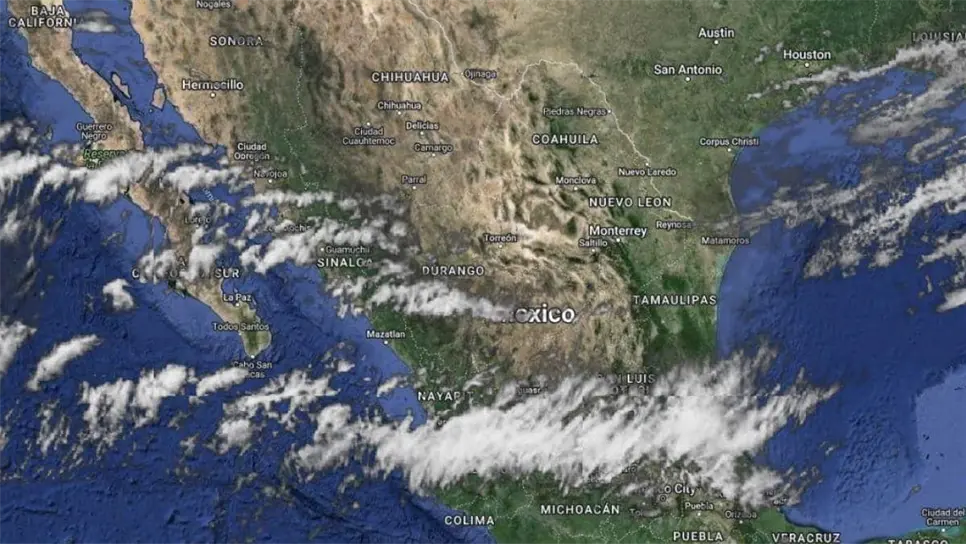 Asimismo, un canal de baja presión sobre Coahuila originará fuertes rachas de viento con posibles tolvaneras en el noreste del país. Finalmente, una circulación anticiclónica en niveles medios de la atmósfera continuará generando ambiente cálido a caluroso y escasa probabilidad de lluvia sobre gran parte de la República Mexicana.