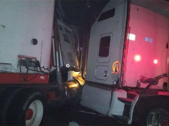 La noche de este domingo, se registró un choque entre dos tráileres en la carretera Internacional México 15. El incidente se desencadenó presuntamente luego de que uno de los transportes pesados perdiera la iluminación mientras circulaba por dicha rúa.